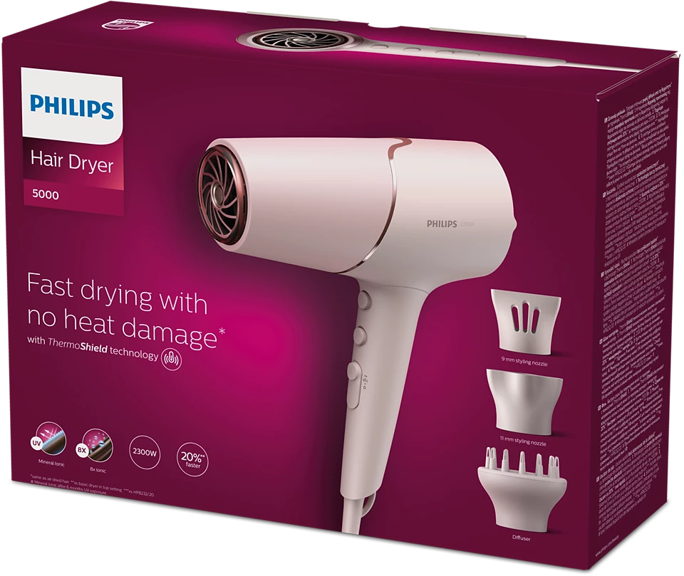 Il Philips BHD530/20 Serie 5000 è un asciugacapelli potente e tecnologico progettato per offrire asciugatura veloce senza danneggiare i capelli. Grazie alla tecnologia ThermoShield, regola automaticamente la temperatura per proteggere i capelli dal calore eccessivo.